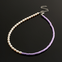 Бусы жемчуг белый Гонконг (биж. сплав, сталь хир., каучук) (колье) 39 см (+7 см)
