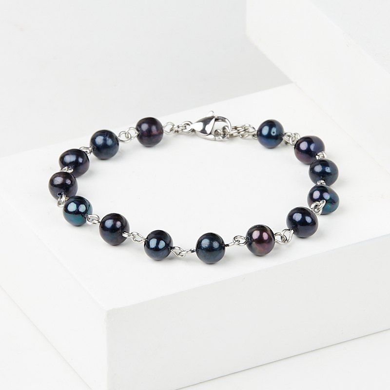 Браслет жемчуг черный Гонконг (сталь хир.) 7 мм 17 см (+3 см)