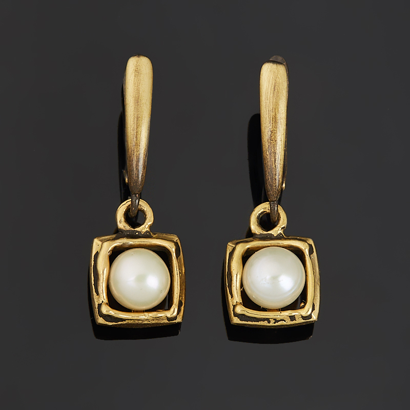 Серьги жемчуг белый Гонконг (бронза, биж. сплав)