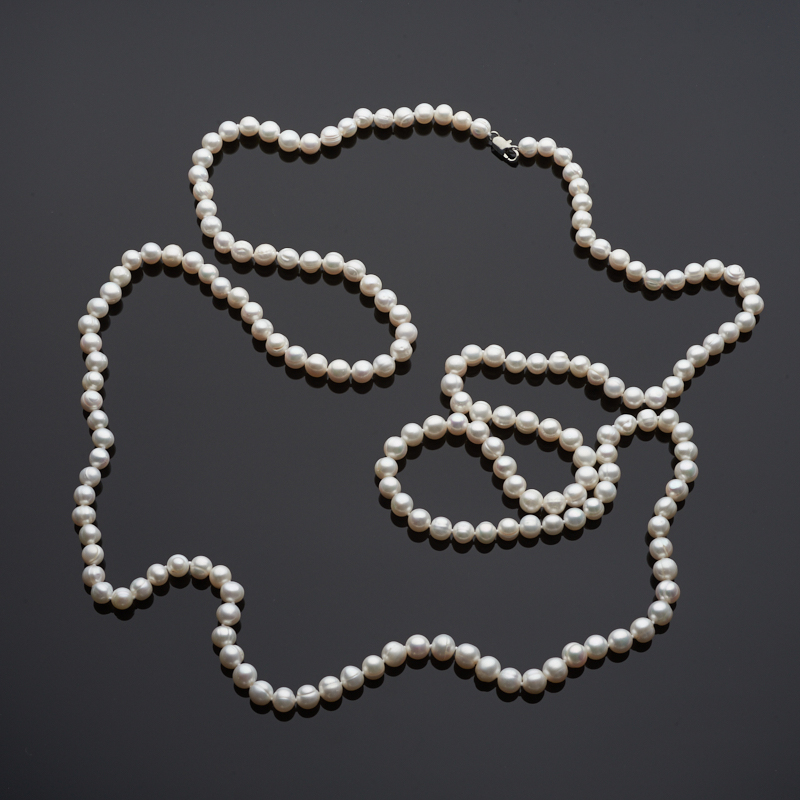 Бусы жемчуг Гонконг длинные 90 см (биж. сплав)