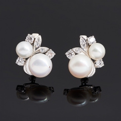 Серьги жемчуг белый Гонконг (серебро 925 пр. родир. бел.)
