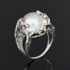 Кольцо жемчуг серый мабэ Гонконг (дублет) (серебро 925 пр. оксидир.) размер 18