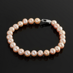 Браслет жемчуг персиковый Гонконг (серебро 925 пр.) 16 см