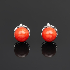 Серьги коралл красный Индонезия (серебро 925 пр. родир. бел.) пуссеты