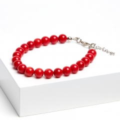 Браслет коралл красный Индонезия (сталь хир.) 7 мм 16 см (+3 см)
