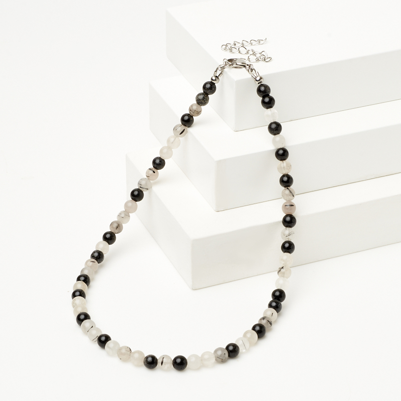 Чокер кварц с турмалином Бразилия (сталь хир.) 6 мм 38 см (+7 см)
