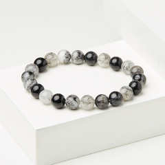 Браслет кварц с турмалином Бразилия 8 мм 17 см