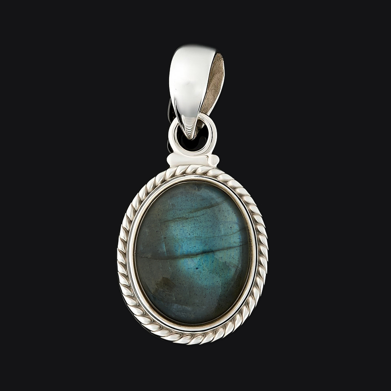 Кулон лабрадор Мадагаскар овал (серебро 925 пр. оксидир.)