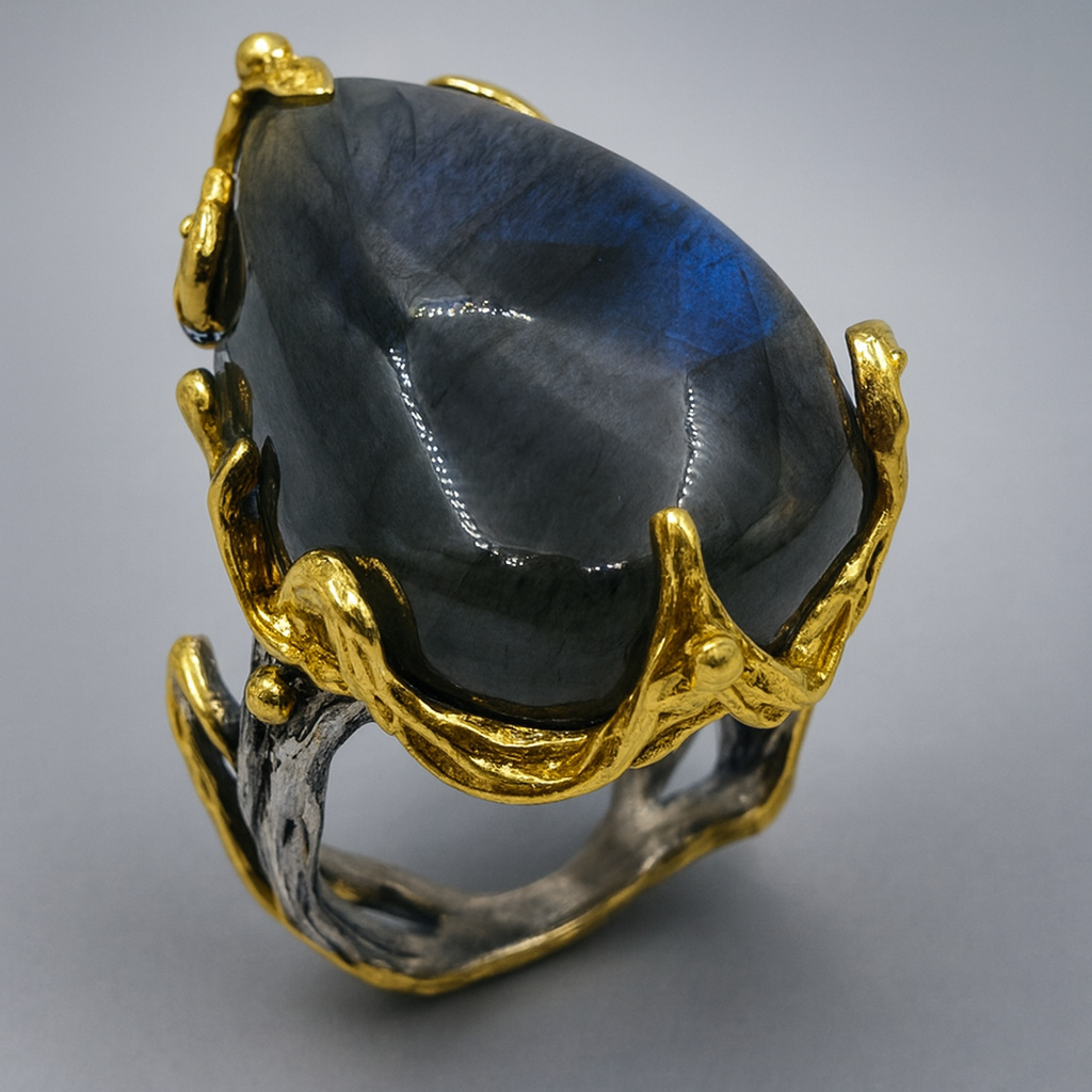 Кольцо лабрадор Мадагаскар (серебро 925 пр. позолота, родир. сер.) размер 18