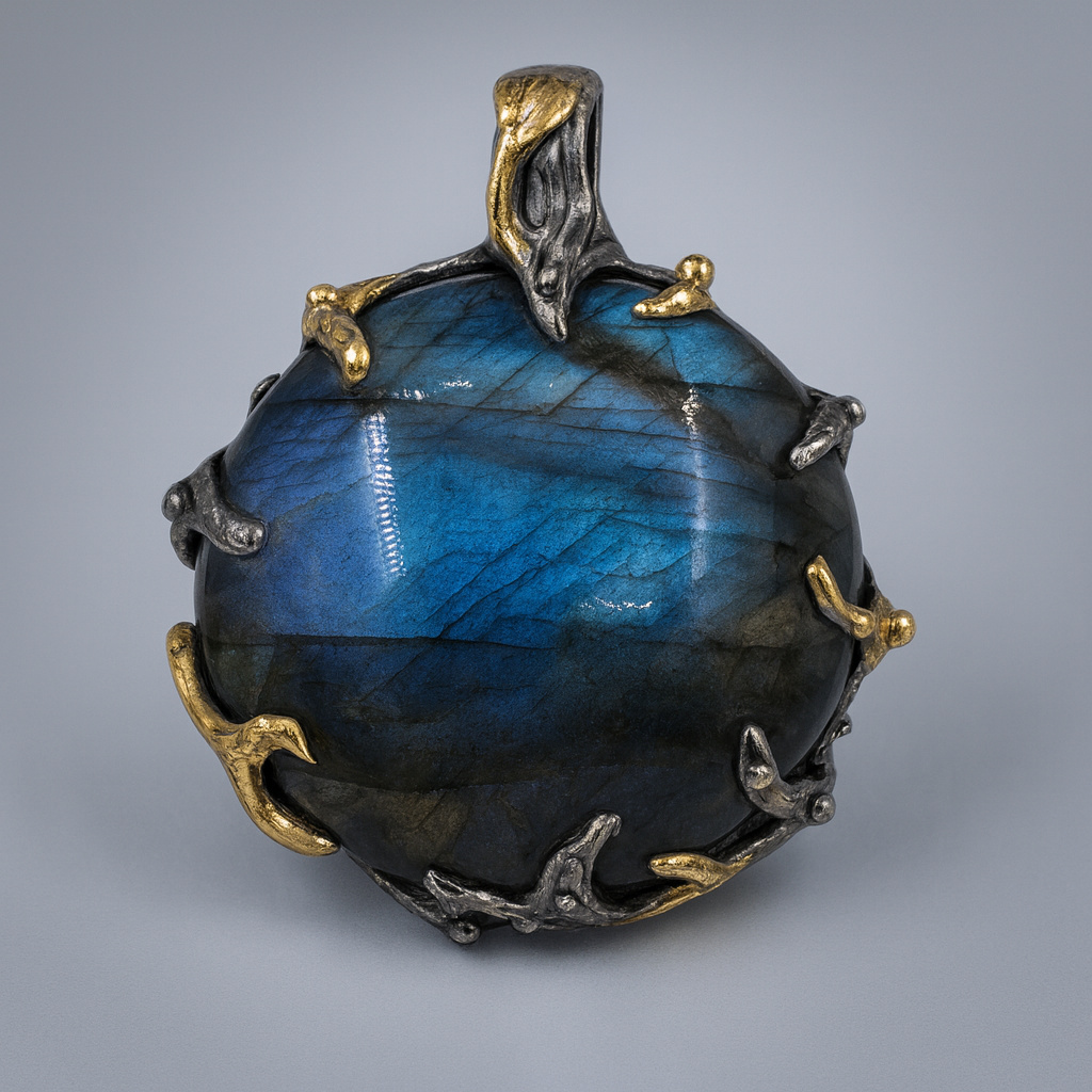 Кулон лабрадор Мадагаскар (серебро 925 пр. позолота, родир. сер.)