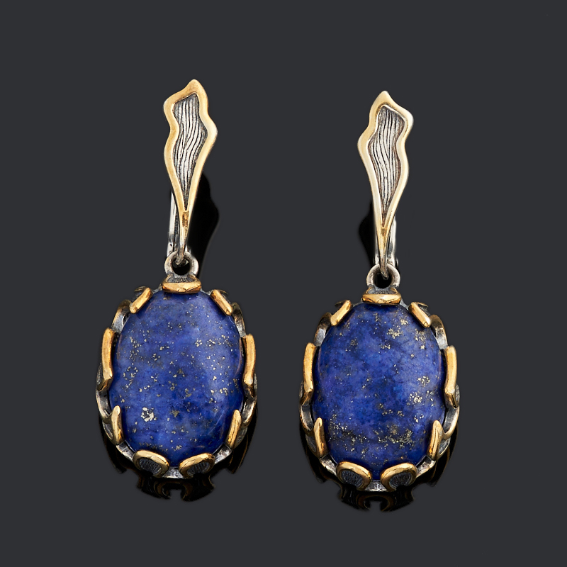 Серьги лазурит Афганистан (серебро 925 пр. оксидир., позолота)