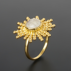 Кольцо лунный камень (адуляр) Индия (латунь позолота) размер 18