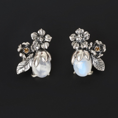 Серьги лунный камень (адуляр) Индия (серебро 925 пр. оксидир.)