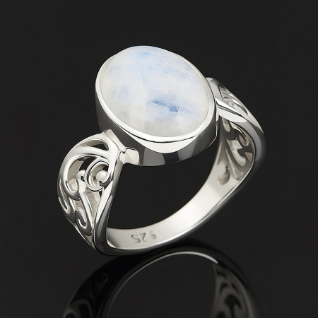 Кольцо лунный камень (адуляр) Индия (серебро 925 пр. родир. бел.) размер 17