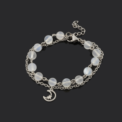 Браслет лунный камень (адуляр) Индия 6 мм 16 см (+3 см) (сталь хир.)