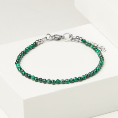 Браслет малахит Конго (сталь хир.) огранка 3 мм 17 см (+3 см)