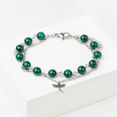 Браслет малахит Конго (сталь хир.) 6 мм 17 см (+3 см)