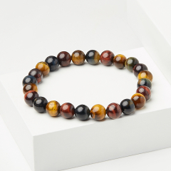 Браслет микс бычий глаз, соколиный глаз, тигровый глаз 8 мм 19 см