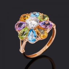 Кольцо микс аметист, топаз, хризолит (серебро 925 пр. позолота) огранка размер 18