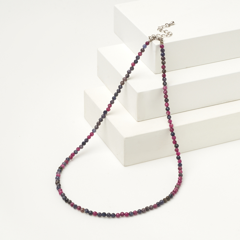 Чокер микс корунд, корунд рубиновый (биж. сплав) огранка 3 мм 40 см (+5 см)