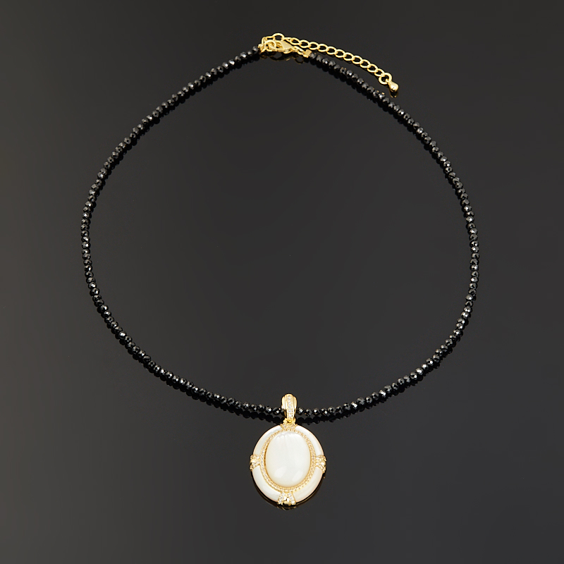 Чокер микс перламутр, шпинель (колье) 2 мм 40 см (+5 см) (биж. сплав позолота)