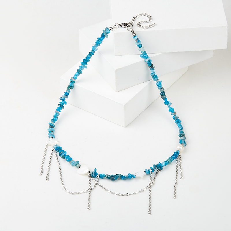Бусы микс апатит, жемчуг, перламутр (колье) 42 см (+7 см) (сталь хир.)