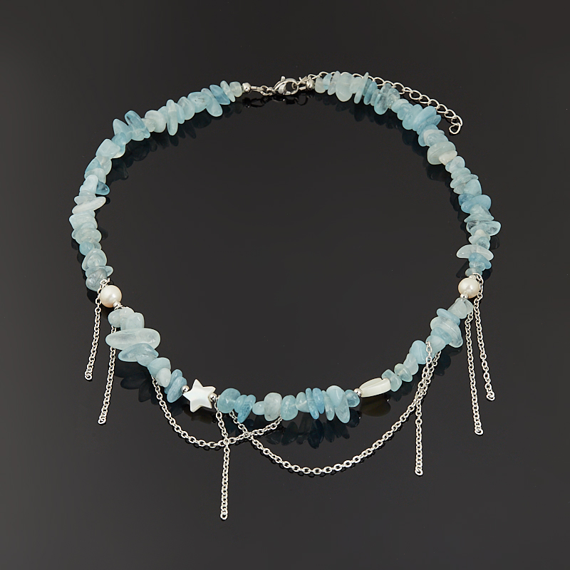 Бусы микс аквамарин, жемчуг, перламутр (сталь хир.) (колье) 46 см (+7 см)