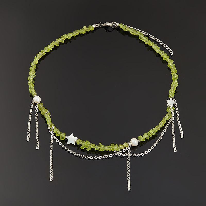 Бусы микс жемчуг, перламутр, хризолит (сталь хир.) 46 см (+7 см)