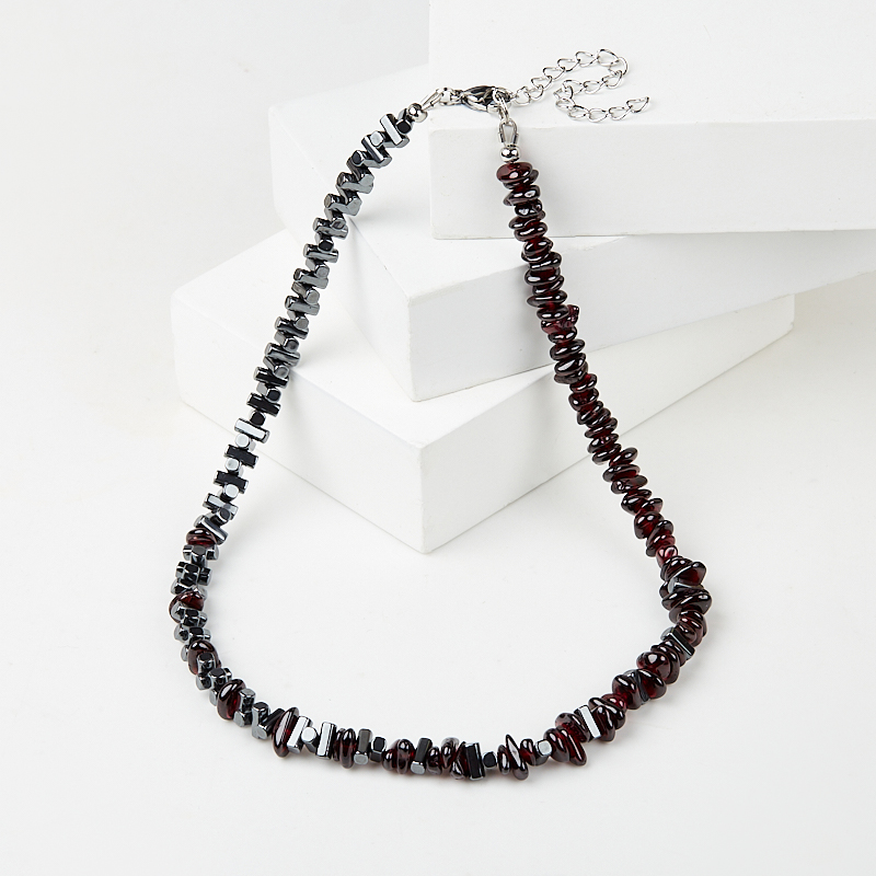 Чокер микс гематит, гранат 38 см (+7 см) (сталь хир.)