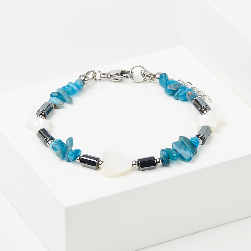 Браслет микс апатит, гематит, перламутр (сталь хир.) 16 см (+3 см)