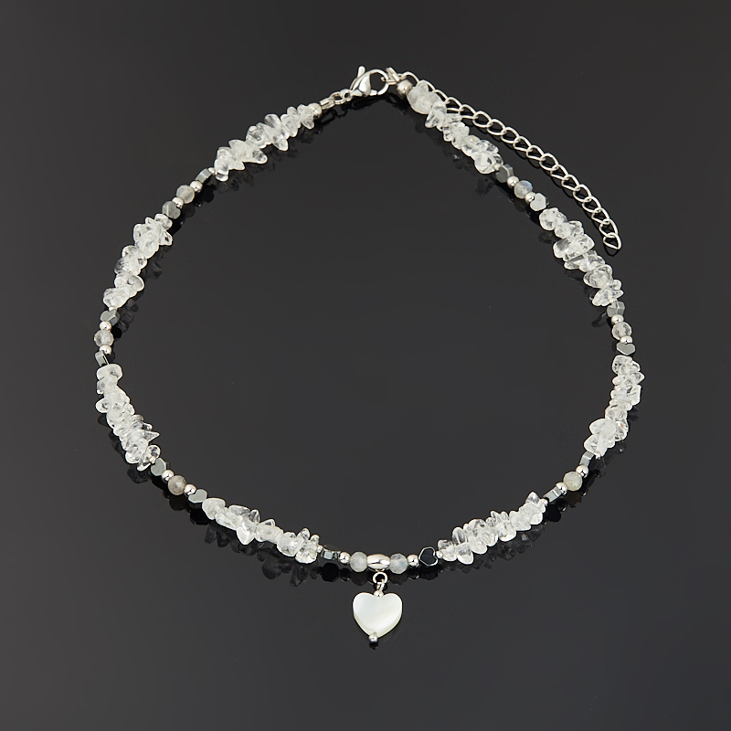 Чокер микс гематит, горный хрусталь, лабрадор, перламутр белый (сталь хир.) 4 мм 38 см (+7 см)