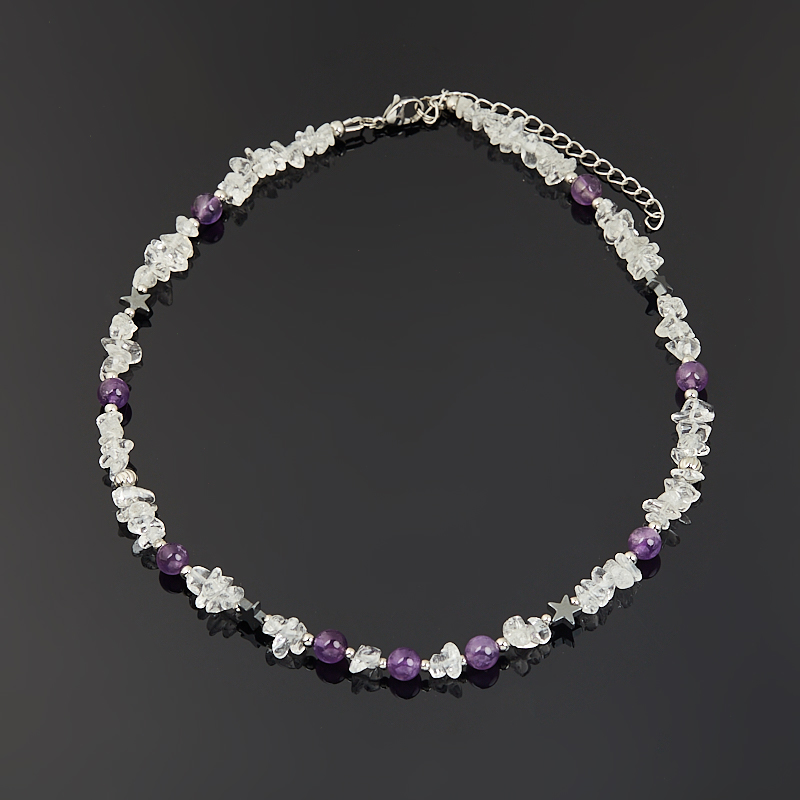 Бусы микс аметист, гематит, горный хрусталь (сталь хир.) 6 мм 41 см (+7 см)