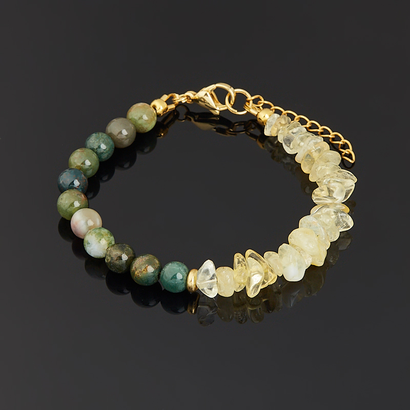 Браслет микс агат, цитрин (сталь хир. позолота) 6 мм 16 см (+3 см)