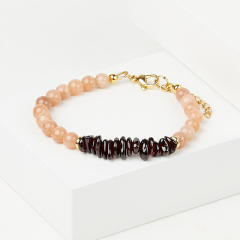 Браслет микс гранат, солнечный камень (сталь хир. позолота) 6 мм 16 см (+3 см)