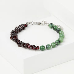 Браслет микс гранат, цоизит (сталь хир.) 6 мм 16 см (+3 см)