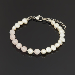 Браслет микс жемчуг, розовый кварц 16 см (+3 см) (сталь)