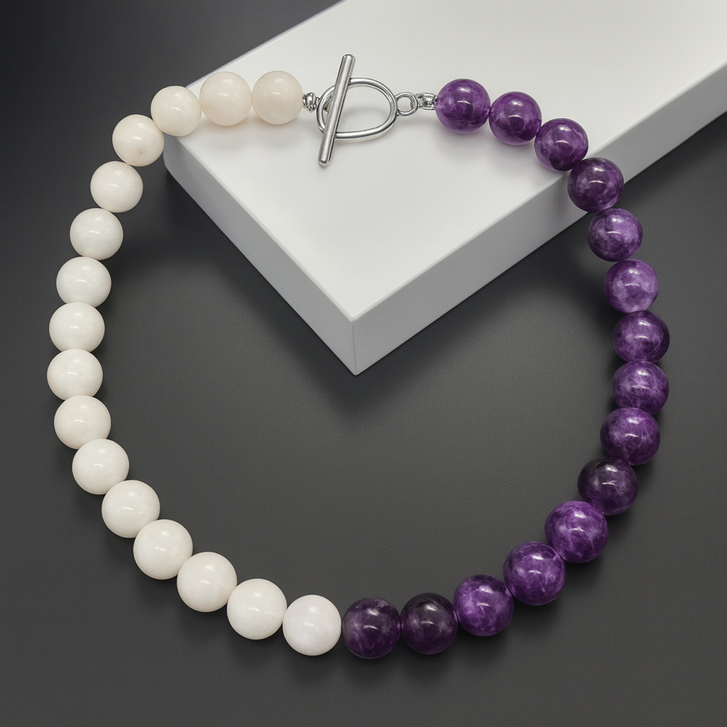 Бусы микс аметист, лунный камень (сталь хир.) 12 мм 42 см