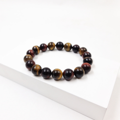 Браслет микс бычий глаз, тигрово-соколиный глаз 12 мм 16 см