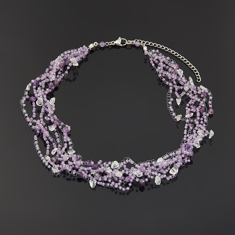 Колье микс аметист, горный хрусталь (сталь хир.) 4 мм 44 см (+7 см)