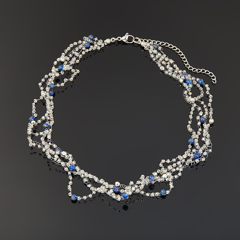 Бусы микс гематит, лазурит (сталь хир.) 4 мм 41 см (+7 см)