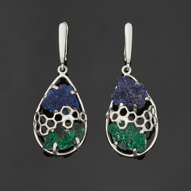 Серьги микс азурит, малахит (дублет) (нейзильбер, латунь родир. бел.)