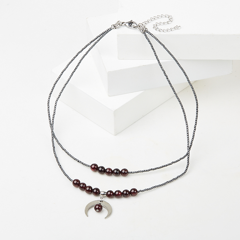Чокер микс гематит, гранат (сталь хир.) (колье) 38 см (+7 см)