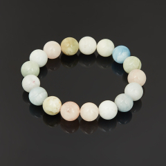 Браслет микс аквамарин, берилл 12 мм 17 см