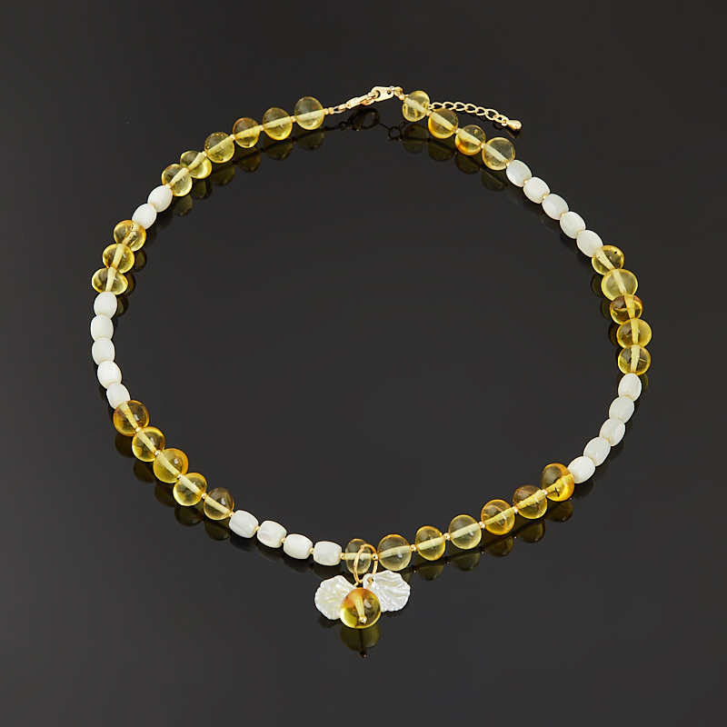 Колье микс перламутр, янтарь (биж. сплав позолота) 45 см (+4 см)
