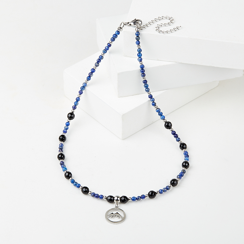 Бусы микс агат, лазурит (сталь хир.) (колье) 41 см (+7 см)