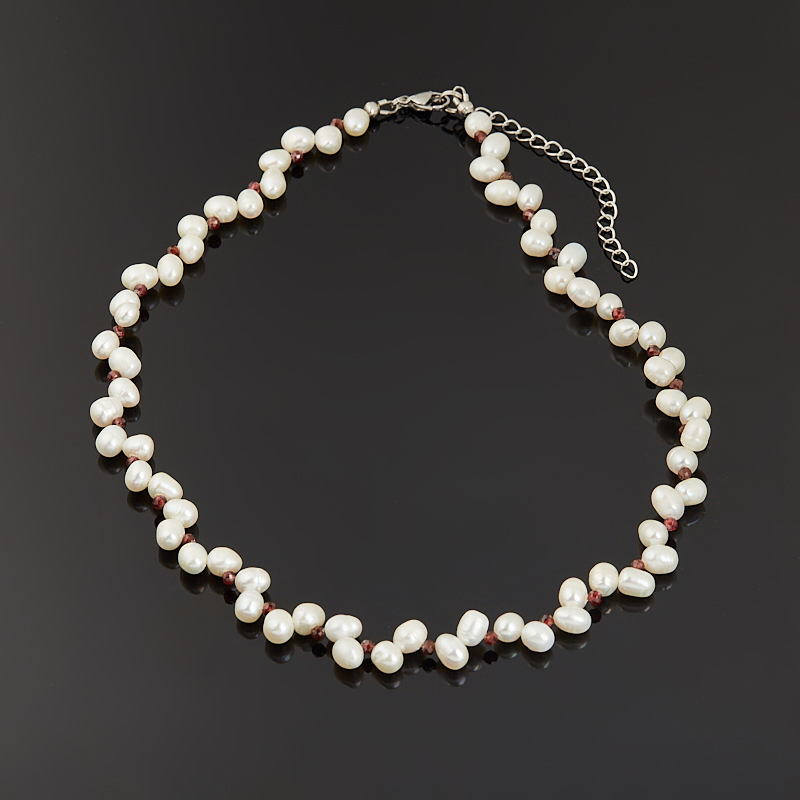 Бусы микс гранат, жемчуг (сталь хир.) 44 см (+7 см)
