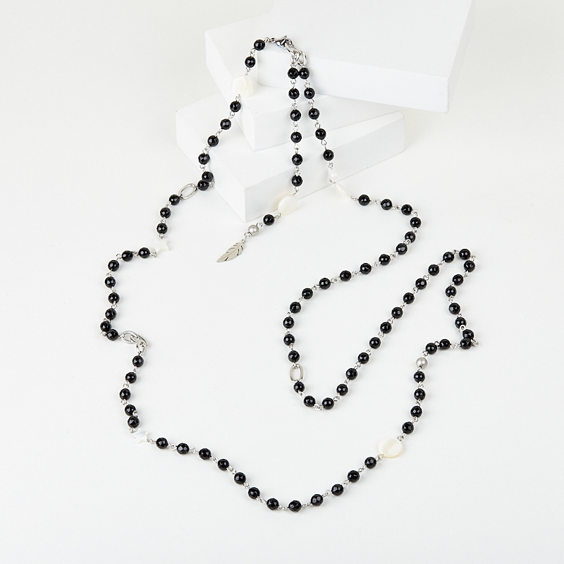 Бусы микс агат, перламутр (сталь хир.) длинные огранка 124 см (+7 см)