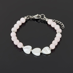 Браслет микс перламутр, розовый кварц (сталь хир.) 16 см (+3 см)
