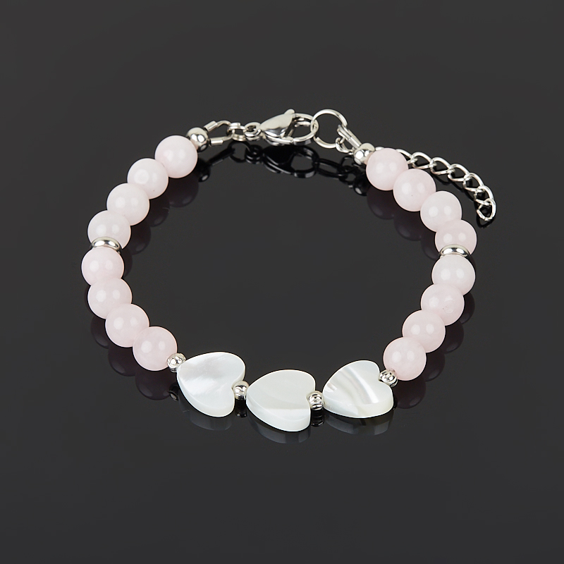Браслет микс перламутр, розовый кварц (сталь хир.) 17 см (+3 см)