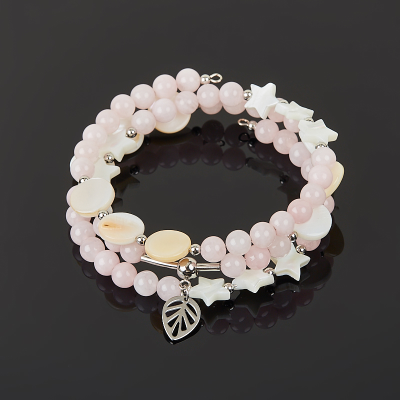 Браслет микс перламутр, розовый кварц (биж. сплав, сталь хир.) пружина 17 см (регулируемый)